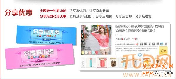 限時打折(不限時長,支持7折以下),團購(精美模版),滿就送,搭配套餐,包郵;自動上下架,自動櫥窗;買家分享自動給優惠;微博推廣,郵件推廣;支持在店內開展試用活動;提高流量,客單價,客戶粘度;美化店鋪等等,功能很強大,而且是免費的。