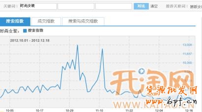 做好店鋪內功,這是個關鍵,也是重中之重。這方面包括店鋪裝修,寶貝標題設置,上下架時間安排,櫥窗推薦利用。最重要的一點是跟上淘寶步伐,用心研究淘寶指數,時刻把握買家搜索寶貝的最新動態。每隔幾天就去淘寶指數搜索一下,看看最近幾天買家都在搜索那個詞,記下來,作為自己寶貝的標題內容參考。比如看看韓版女裝搜索趨勢: