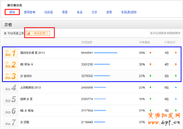 第三種:淘寶排行榜(://top.taobao)中的關注熱門