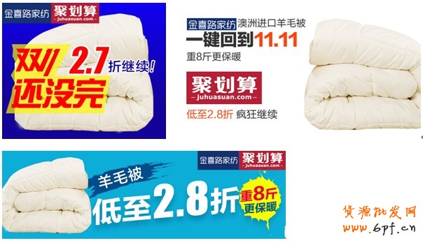 以下是該掌柜雙11后的創意,內容以狂歡延續、產品特性和已售件數為切入點,另外結合聚劃算活動引爆買家購物熱情。落地頁面掌柜直接鏈接到聚劃算頁面,因為目的很明確,要的就是聚劃算的成交,在聚劃算的頁面上除了打造繼續的氛圍外,最重要的表現出產品特性,用高性價比打動買家。