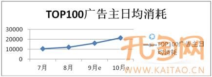 單個廣告主日均消耗看也呈上升趨勢,TOP100客戶日均消耗目前在15000元左右,預計到10月會達到20000元,商家可以根據此數據提前做好接下來的日投放預算。