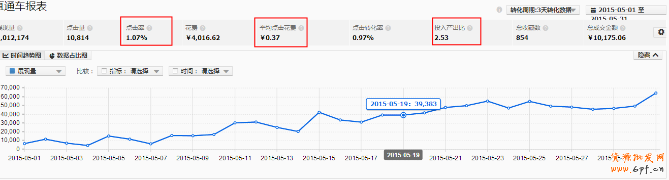 綜合來看,五月份的點擊率為1.07%,平均點擊花費花費為0.37元,而投入產出比是2.53,相比較剛開始推得一個月,各方面數據都有較大的提升,而相比女涼鞋的整體行業ROI,這應該也是較理想的。