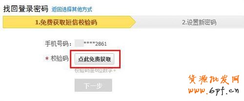5. 5點擊“點此免費獲取”,輸入手機上收到的校驗碼,點擊“下一步”。