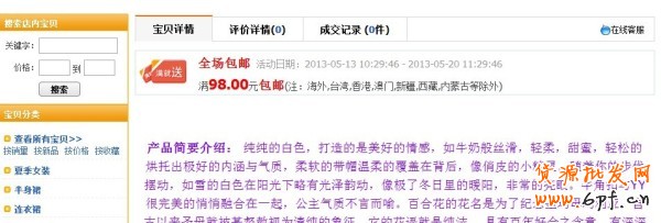 例:設置全店滿XXX元包郵,比如滿100元就包郵,設置后活動模板安裝到參加活動的寶貝詳情上面,起到廣告的作用。
