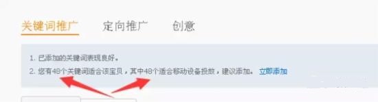 1、計劃權重,很簡單的兩個數據,不需要任何軟件和花錢就能看懂,先進入計劃里面,點擊添加關鍵字。按照展現排名,你會看前面的肯定是熱詞,一屏的關鍵字是不是都有手機標,這是體現無線端權重,再看看相關性,這關系你對應關鍵字的初始質量分。