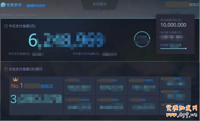 單店概況——店鋪核心實時數據、銷售目標的完成進展、市場的實時排名;