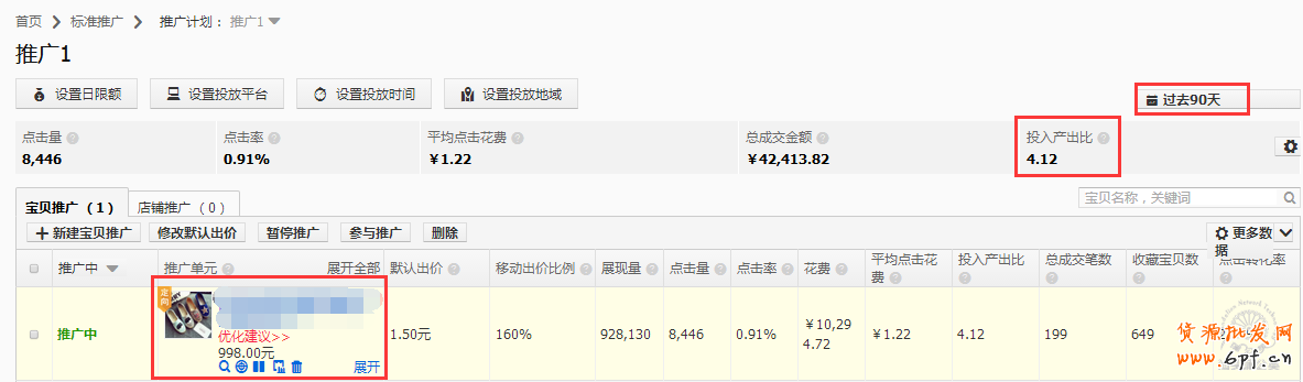 從上圖可以看出,該款夏季寶貝在過去90天的推廣期間,ROI=4.12,引進的流量促進的總成交金額在8月,也就是在夏季末開始呈現(xiàn)下滑的趨勢。