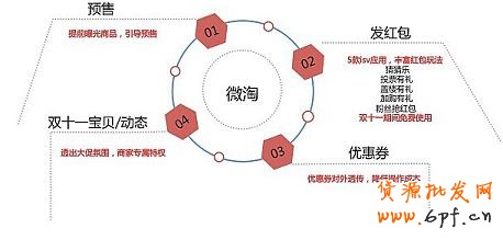 在今年,微淘會開啟雙十一會場專區,提供若干互動玩法幫助賣家活躍粉絲,拉升店鋪流量。推出如“預售”、“紅包互動”等多款免費的互動應用給商家,幫助商家去做好預熱沖刺階段的預熱。
