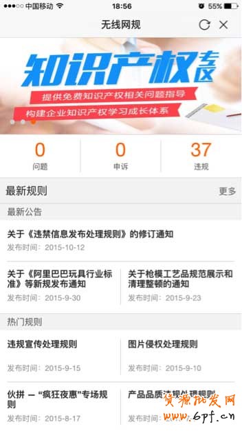 輕輕一點圖標,彈出了以下界面:可以看到當前賬戶狀況;選擇對應的數字進入,可以查看到投訴、申訴、違規信息并調整操作界面;下方主要是網站最新公告,熱門規則等,點擊進入即可查看全文。