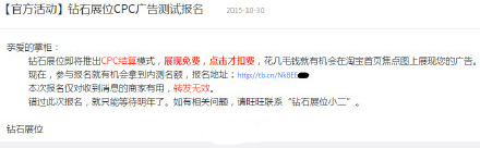 1、鉆石展位即將推出CPC結算模式,展現免費,點擊才扣費,花幾毛錢就有機會在淘寶首頁焦點圖上展示你的廣告。