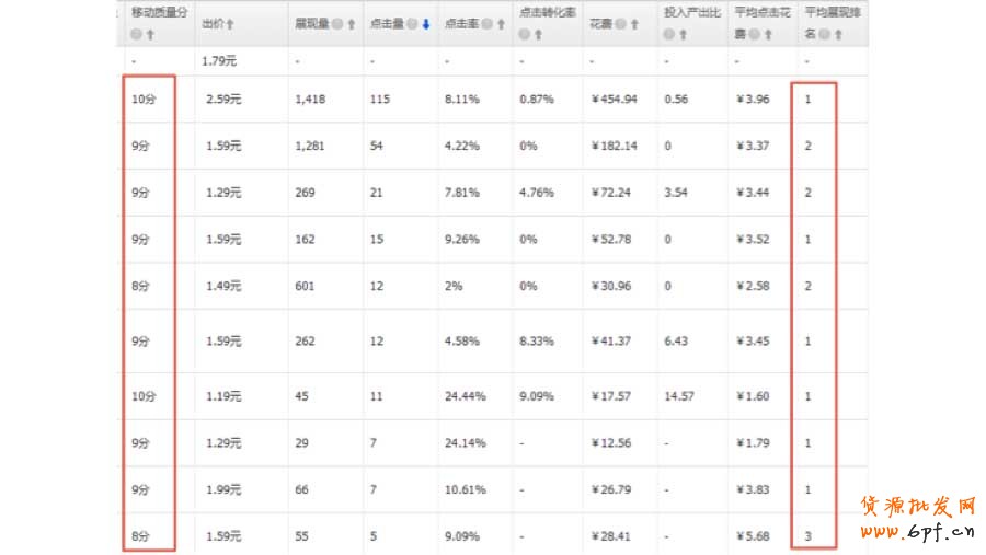5分的詞采用廣泛匹配方式有機(jī)會(huì)展現(xiàn),如果采用精準(zhǔn)匹配,則無展現(xiàn)機(jī)會(huì)。質(zhì)量分在低于6分情況下,沒有快速優(yōu)化方法,可嘗試先刪除推廣寶貝中無手機(jī)標(biāo)且PC質(zhì)量分也比較低的詞,同時(shí)盡力優(yōu)化其余有手機(jī)標(biāo)的關(guān)鍵詞質(zhì)量分。7分及以上,有首屏展現(xiàn)機(jī)會(huì),只看相關(guān)性維度!相關(guān)性必須到4格及以上。
