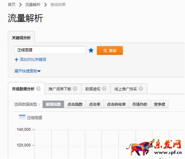 我這里是又選了一個壓縮面膜作為例子,大家仔細看在市場數據分析這塊有六個選項,我們在選擇第三個數據透視的時候會出現下面這樣的界面。