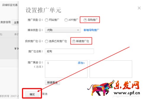 六、在設置推廣單元時,有幾個選項需要淘寶客勾選的,推廣類目、媒體類型、投放推廣位,既然今天是教大家從店鋪中賺錢,當然是選導購推廣、媒體類型:代購,最后點擊確定。