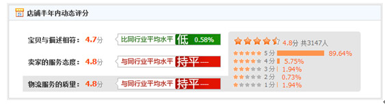 首先給大家介紹一下店鋪,本人的店鋪是個C點,經過多年的運營已經達到了一皇冠了,主營類目是服飾鞋包,下面是店鋪的DSR: