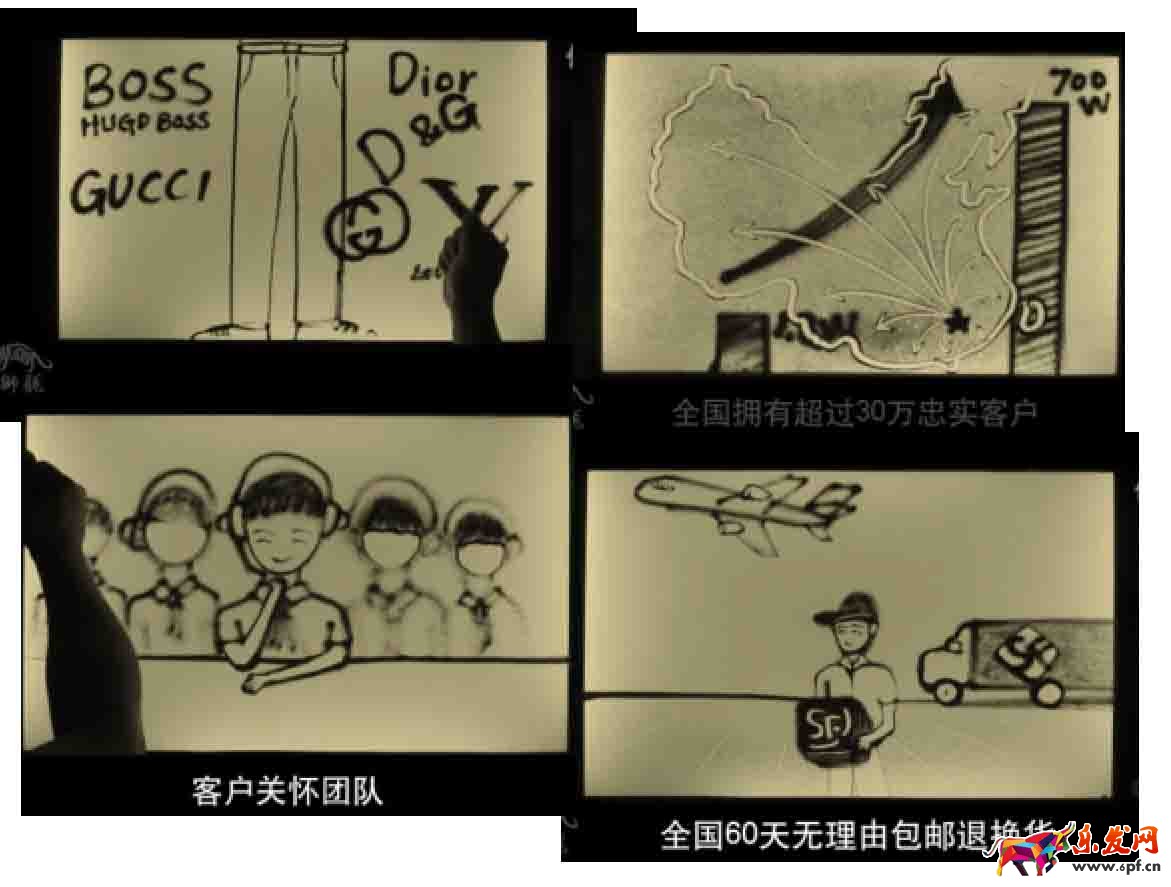 這家店鋪就是用沙畫形式把公司的成交主張、品牌故事、發展歷程給表現出來。視頻的制造成本其實并不高,關鍵是有創意。這個沙畫視頻是花2000塊在淘寶請的沙畫藝人做的沙畫,然后用攝像機垂直錄制下來,放快速度,插上字幕就好了。