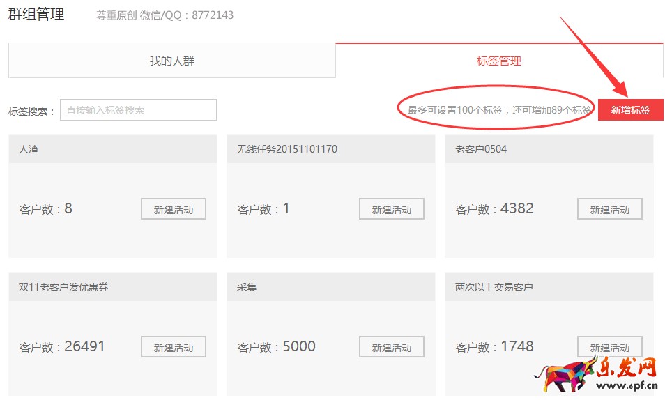 在“群組管理”這個模塊,目前官方給出的“店鋪人群”群組功能其實比較泛,叔個人感覺不是很實用,推薦實用“標簽管理”。