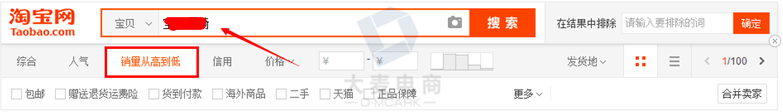 淘寶搜索主要關(guān)鍵詞,按銷量排行,查看首頁(yè)最高銷量。