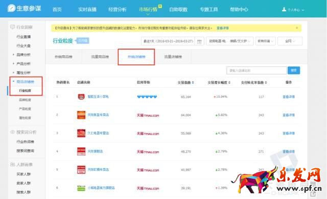 分析店鋪可以從生意參謀-市場行情-行業粒度入手。生意參謀目前是用交易指數來評估排名的,交易指數是用與銷量有關的多個指標綜合計算出來的。對比下自己店鋪的實際情況,可以大致推測其他競爭店鋪的情況。
