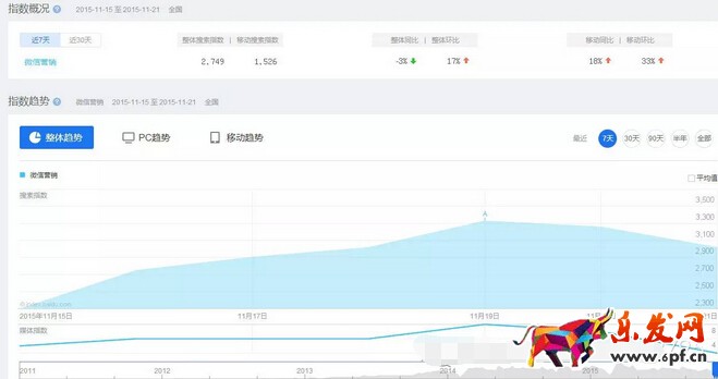 從上圖我們可以看到,微信營銷的指數在九百多1千左右。搜索其他產品的話,微信的文章排名基本還是很少找到。鍵人認為,百度是中國最大的搜索引擎,有多年從事搜索方面的經驗,在考慮問題方面不會像我們個人站長一樣沒有頭腦的,一定會給予相當的權重,就像給你的網站權重一樣。因為微信畢竟不能完全解決用戶的需求,在用戶體驗度上面只會占據一部分的權重,也只能占據搜索引擎一部分的權重,所以廣大站長也不必太過擔心。