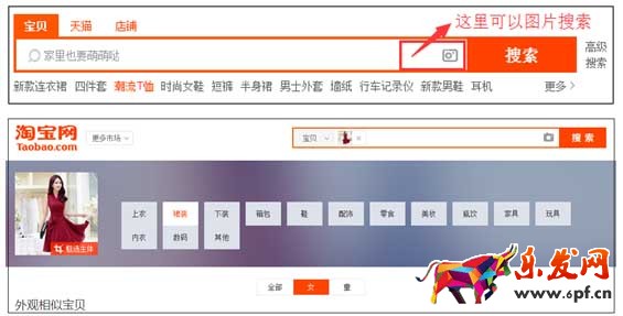 從去年開始,我們就知道:淘寶會重點扶植新品。這個新品可不是新上架的商品,而是真正的在淘寶上有很少的同款(相似款),最好是獨一無二的,這樣的寶貝一定可以在新品期獲得更多的新品流量扶植。那么,淘寶怎樣才能認定你是新品呢?首圖就是一個極其重要的判斷標準。看下面這兩張圖,從搜索框里面,那個照相機圖片的地方,點擊就可以搜索圖片。在搜索結果中,這種“外觀相似寶貝”的數量越少,你的寶貝就越新,就越會得到搜索引擎的青睞。