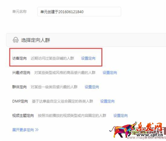 這上面是cpm付費模式下的訪客定向,如果是cpc付費模式,那么就只能使用系統智能推薦的人群了