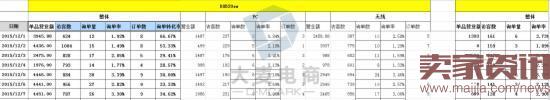 2、【核心單品數據】單品營業額、訪客數、詢單量、詢單率、訂單數、詢單轉化率,以及PC端和無線端的對比,可以反映熱銷單品的一個銷售情況。(體現了美工頁面做的如何,單品活動是否給力)
