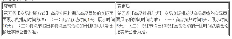 為了減少商家對于參加清倉活動審核周期的疑問,現對審核周期進行公告,在招商規則做如下調整: