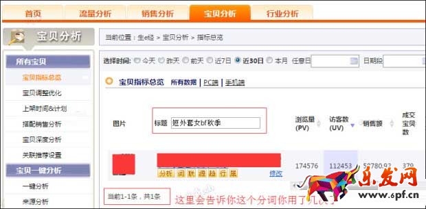 到這一步,我們能用的好用的分詞都整理出來了,現在要做的就是把它們布局到不同寶貝上面了。我非常建議到生E經的寶貝分析里面修改標題,除了方便以及可以查看原標題每個分詞的數據外,你把準備用的分詞放到搜索框,立馬就知道這個分詞已經有哪幾個寶貝在用,避免某些分詞用得太多或有些分詞不知道有沒用過。