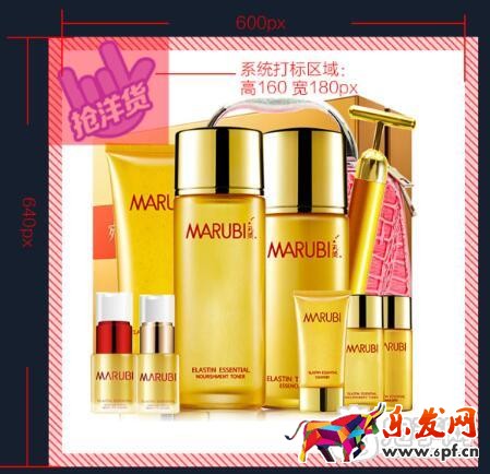 系統(tǒng)打標規(guī)范:坑位圖片尺寸640*640px,白底,商品需商品需擺放在600px以內(nèi)的方框內(nèi),不得出現(xiàn)促銷信息。如為品牌商品,右上角可放置品牌logo,logo區(qū)域距離右,上邊框為20px。