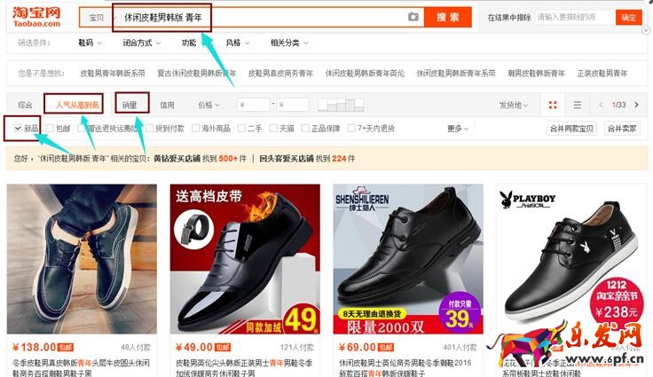 把主詞“休閑皮鞋男韓版 青年”, 放到搜索框中搜索