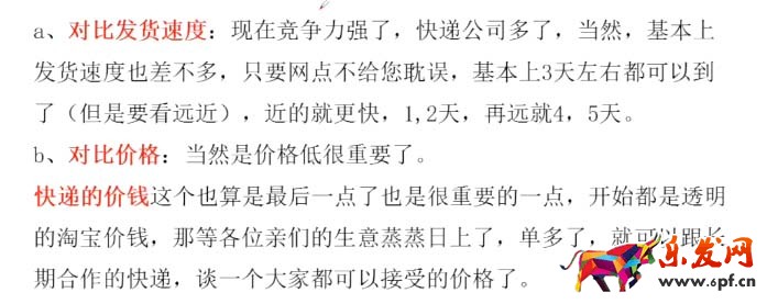 總之,在選擇快遞是要結合當地資源,盡量選擇知名快遞和服務、發貨質量有保證的快遞,如果前期價格高的話訂單增高可以降價。
