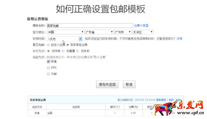 運費模板是每個商品都必須設置的,無論是否包郵,設置好運費模板后能為寶貝加權。下面我們通過賣家中心-物流管理-物流中心進入運費模板設置模板,運費模板設置分為以下幾種情況:第一種,包郵模板的設置。