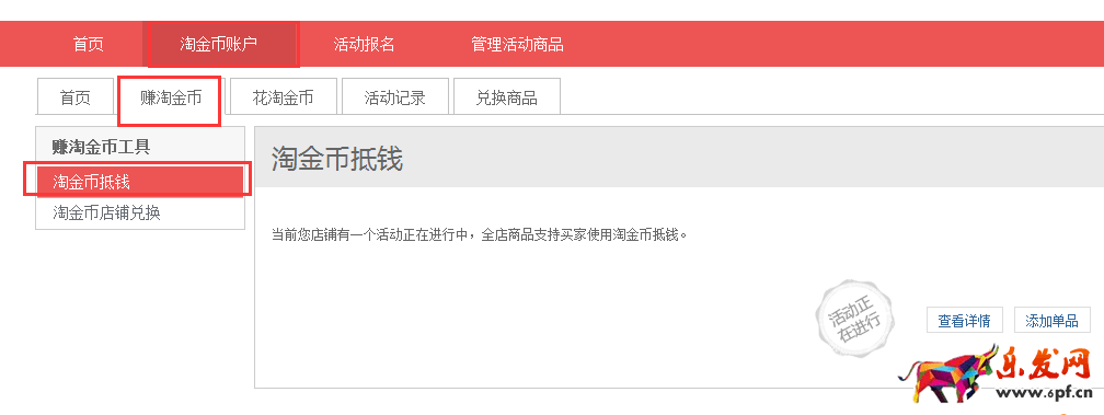 在賣家中心店鋪營銷中心,點擊淘金幣營銷賺金幣,淘金幣抵錢設(shè)置單品淘金幣或全店淘金幣抵錢。
