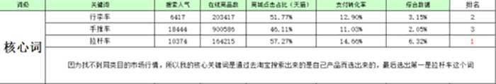 “購物車 小拉車 拉桿車 行李車 小推車”這樣你的核心詞就有了。這樣的詞還有兩個好處: