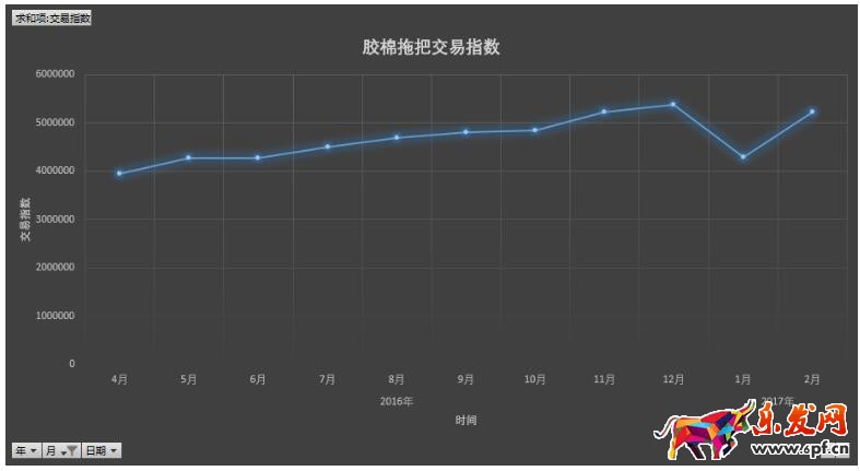 本案例所用的練習數據集,采集自淘寶生意參謀家居行業下膠棉拖把類目中的從 2016年3月到