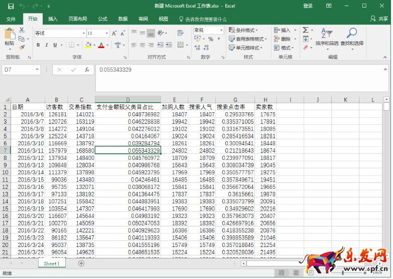 點擊確定之后,如下圖所示,將加購率所在的C列轉換成百分比顯示格式: