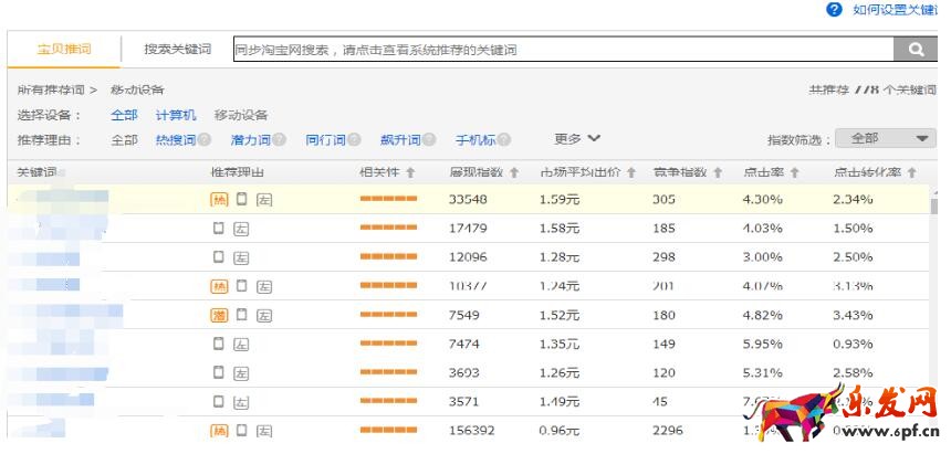 細節部分,個人推薦直通車。直通車是一個相對透明的工具。過去一小時排名,以及你添加的每一個關鍵詞的搜索點擊以及出價等。