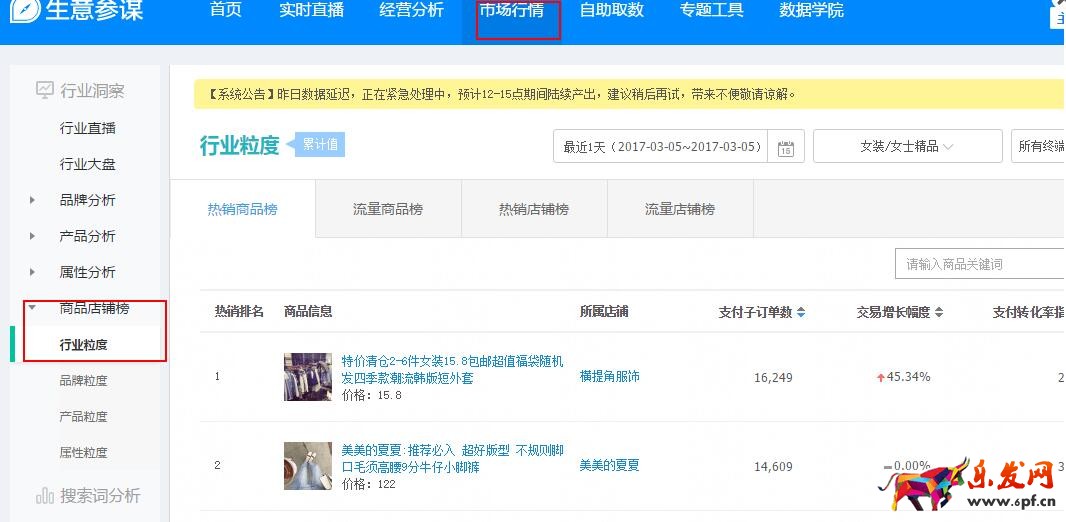 市場行情里商品店鋪榜行業粒度,我們以最近七天為時限,交易增長降序排列,這期間有做聚劃算和淘搶購的產品可以先過濾不看,只看那些交易增長幅度大的商品,去看他們商品的圖片風格情況,然后以他們的商品風格模枋出屬于我們自己產品的風格,比如有一段時間三拼圖好,我們就可以做三拼圖,如果是兩拼,然后文字突出效果好的,我們就做文字突出的圖片。。。以此類推做出不同風格的圖片再上直通車測試,那么你肯定會得到一張點擊率非常好的圖片。這樣點擊率好了,我們的賬戶權重自然而然地就高了。