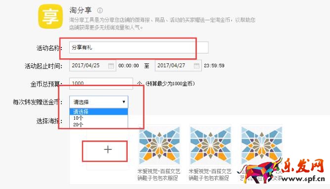 你還可以通過官方活動對你的微海報進行推廣,這里就會用到官方工具淘分享,也是在店鋪營銷中心中找到的,這個是需要花費你淘寶金幣的,當有人分享了你的海報給其他人了,或者分享出去了,就會得到淘金幣。數量你可以設置的。如果你有足夠的淘金幣的話,可以嘗試下,會有意想不到的效果的!對于新品破零還是不錯的方法。