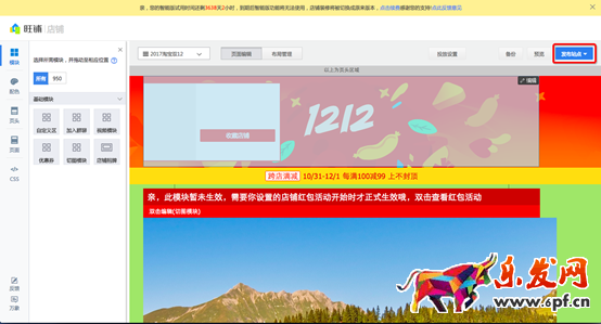 雙12活動承接頁是淘寶官方為所有參與大促賣家提供的默認店鋪活動預制頁面,可裝修不可以刪除,出現PC及無線渠道,開放裝修時官方提供默認預制頁模板,同時提供預制頁編輯功能,賣家可個性化裝修,主要有一下幾個特點: