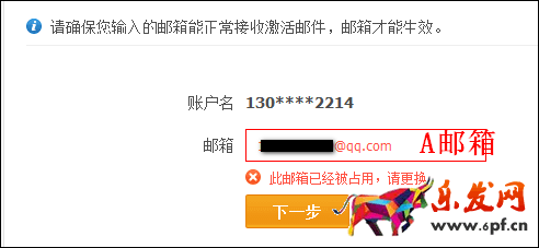 這里我分別用“A郵箱”表示被占用的郵箱 “B郵箱”沒被占用的郵箱