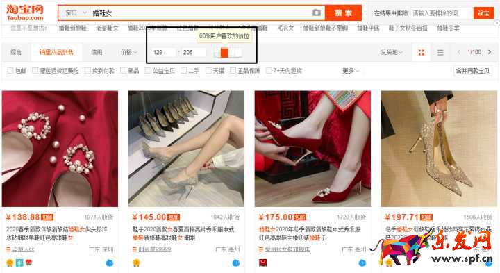 以我曾帶著學生干的“婚鞋女”為例,大家可以看到“0-129元”30%用戶喜歡的價位,這類“競品銷量”大都在2000-5000件