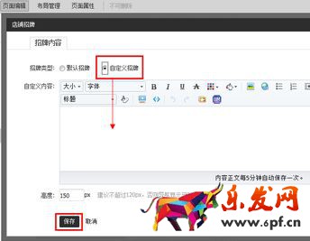 4、接下來就是店鋪頁頭設置,主要有 導航 ,招牌(一個店鋪最顯眼位置,很重要),頁面設置,背景顏色等等,設置好了后,點擊保存