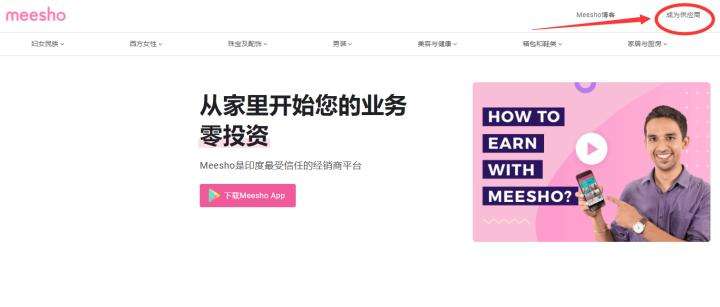 打開(kāi)Meesho官網(wǎng)首頁(yè),點(diǎn)擊“成為供應(yīng)商”,跳轉(zhuǎn)頁(yè)面后進(jìn)行信息填寫,等待平臺(tái)聯(lián)系。